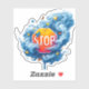 This sticker has a stop sign design on it.