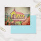 A watercolour pencil sketch and painting of the Alto Vista Chapel in Aruba with Caribbean Sea and various cacti, rocks and thorny shrubs.