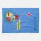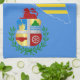 The national flag of Aruba is infused into an outline map of the country. Also inluded is the country`s coat of arms and both images are on a blue background.