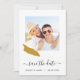 Let guests know to save the date for your wedding with this pretty minimalist photo card with a map outline of the location of your event.