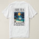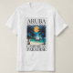 Stunning tropical Aruba poster featuring pristine white sand beaches, turquoise Caribbean water, and tall palm trees under a golden sun. Classic retro design with bold text "ARUBA" and iconic slogan "One Happy Island".