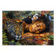 “Arumáya” Jaguar’s Bloom - Women In Amazonia. As she sleeps beside her jaguar guardian, their souls intertwined, she embodies the delicate beauty of a flower nurtured by the wild, her spirit blooming in harmony with the fierce protector of the forest.