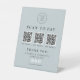 This business scan to pay QR Code menu pedestal sign features a sage green background and modern sans serif font. Add your own logo and business pay QR codes to create a custom piece for your business.