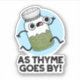 As Thyme Goes By Funny Herb Spice Pun features a cute bottle or thyme running by. Perfect pun gift for family and friends who love cute herb spice thyme puns.