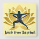 This serene clock features a yogi gracefully performing asanas, symbolising peace, balance, and inner calm. The "Break from the Grind" slogan encourages viewers to find tranquillity through mindfulness and movement.