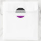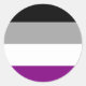 Badge with the asexual flag on it, as elected by various asexual communities. Black is for asexuals, grey is for the demisexuals and grey-aces, white is for the sexuals (mostly allies but also as part of the spectrum) and purple is for community.