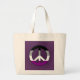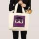 Tote Bag with peace symbol design in colours of asexuality pride flag; black, grey, white and purple striped pattern design