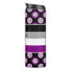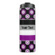 Thermal tumbler with the asexuality pride flag and a seamless modern geometric flower pattern in the colours of the pride flag; a black, grey, white, and purple ace pride design on a black background with an editable text template for your name or message