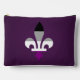 Accessory Poach with fleur-de-lis (fleur-de-lys or lily flower) symbol with rainbow stripes of black, gray, white and purple from asexuality flag; ace pride design on purple background