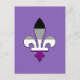 Design with fleur-de-lis (fleur-de-lys or lily flower) symbol with rainbow stripes of black, grey, white and purple from asexuality flag; ace pride design on purple background