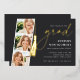 Celebrate their big milestone with these chic foil invitations that are perfect for a graduation celebration. Luxe design features "grad" and a graduation cap tassel illustration in elegant gold foil on a rich ash black background. Personalise with your party details aligned at the right in modern white lettering. Finish the design with three square photos of the graduate in a photo strip layout.