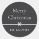 Finish your holiday mailings and gifts with these sweet and simple Christmas stickers, customisable with your preferred holiday greeting and family signature (shown with "Merry Christmas") on a soft ash black background. A petite bow running through the centre completes this elegant minimalist holiday design.