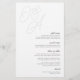 A beautiful typography based wedding menu card featuring your initials in oversized script lettering at the top, in tone on tone shades for a watermark effect. Personalise with your menu items beneath, aligned at the right. Our Ash colorway makes a classic statement with soft black and barely there grey lettering on a crisp white background.