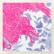 Fierce oriental dragon in Pink and White on Blue Floral background