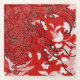 Asian Dragon - Red and Black on Red Floral Glass Coaster