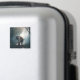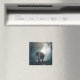 A magnet with a photograph of an Asian elephant with rounded ears standing in a forest clearing looking towards the viewer with sunlight streaming down through the canopy of trees.
