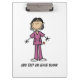 A great clipboard for nurses, features an Asian female nurse in a purple uniform with stethoscope and an area you can customise or leave blank.