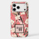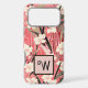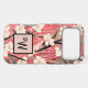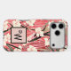 This lovely phone case features a Japanese style floral print of dusty pink, light peach, garnet red, creamy white, and brown. Your monogram initial appears in a stylish typeface against a block of pink, bordered in black. This Chinoiserie style pattern will bring a sense of spring to your iPhone or Android case year round.