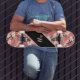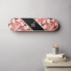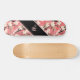 This lovely Asian-inspired skateboard features a Japanese style floral print of dusty pink, light peach, garnet red, creamy white, and brown. Your monogram initial appears in a stylish typeface in pink against a dramatic diagonal color block of black.