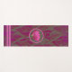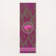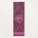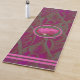 Yoga mat featuring a lotus on an Asian inspired background in muted green with fuchsia pink.