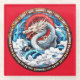 Asian Mythical Dragon in Red and Blue Glass Coaster