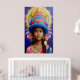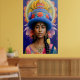An image of an Asian princess wearing a big blue floral hat. This is an image created by AI with floral theme design.