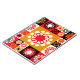 asian style ethnic mosaic with stylised flowers in gold red ivory black shades