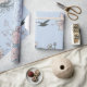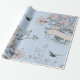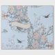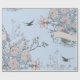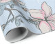 Asian Style Pink Lilies and Roses on Blue Wrapping Paper