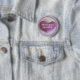"Ask me about crochet" with Purple Crocheted Heart 6 Cm Round Badge