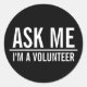 featuring title "Ask Me, I'm a Volunteer" in white bold sans serif font on black background.