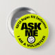 Ask me I am a volunteer, slogan smile customer service client liaison or helper button badge. Let your customers or the public know you are available to help with this bright yellow green, black and white button badge with your conference/company or event name above. Background colour can be changed if required. Designed by www.mylittleeden.com