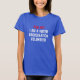 Red and white text on blue editable colour t-shirt. Unisex. Available in many colours and style options.