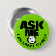 Ask me I am happy to help, slogan smile customer service client liaison or helper button badge. Let your customers or the public know you are available to help with this bright green, black and white button badge. Ideal for gardeners, nursery workers, garden centre staff and environmental work staff. Background colour can be changed if required. Designed by www.mylittleeden.com