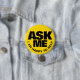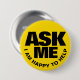 Ask me I am happy to help, slogan smile customer service client liaison or helper button badge. Let your customers or the public know you are available to help with this bright yellow and black text button badge. Background color can be changed if required. Designed by www.mylittleeden.com