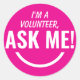 Ask Me Neon Pink Volunteer Badge Classic Round Sticker