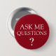 Bulk editable business promotional Ask Me pin back button pins in a bold yet simple design that says Ask Me Questions designed to be used at your next trade show, convention, or special events as a way to prompt customers or prospective clients to ask questions. These have been used at marketing trade shows promoting products, services, or charitable events created in classic black and white.