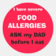 Remind friends, family and friendly strangers to check with YOU before feeding your child with food allergies. Because there are multiple hidden derivatives, problems with multiple allergies, and cross contamination issues this sticker reads simply "food allergies". Protect your little one with this brightly coloured warning!