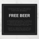 Funny Black Label Groomsman and Best Man Proposal. Features the words FREE BEER in large print with the terms of service listed in very small print. Customise the terms of service to fit your event or person. ---- "TERMS OF SERVICE" CONGRATULATIONS! AS THE BEARER OF THIS CARD YOU HAVE ACCEPTED THE DUTIES OF MY GROOMSMAN.