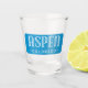 A stylish typography design shot glass with the words Aspen Colorado on a blue background. The aspen text has a lovely art deco and vintage feel. Perfect for Aspen lovers!