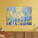 A photograph captures a dense grove of aspen trees in their autumnal glory. The slender, white-barked trunks stand tall against a backdrop of vibrant yellow leaves, creating a striking contrast. The sunlight filters through the branches, casting dappled shadows on the forest floor. The image evokes a sense of tranquillity and the beauty of nature's seasonal transformation.