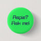 Neon-green button that says "Aspie? Ask me!" For the person who identifies with Asperger Syndrome and wants to educate people, who has difficulty starting a conversation.