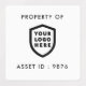 Simple custom corporate asset ID tag to label property belonging to your company with a modern minimalist style which you can easily update with your company logo and asset number.