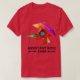 I give wanted to give this a 4 instead of a 5 because these Basic DARK T0shirts run unexpectedly SLIM or Narrow. Which is great if you do not have a potbelly, but I have a paunch. It isn't the shirt's fault that I've got a beer belly. The design and shirt itself is a quality cotton shirt. The color is more of a deep purple, but still a very pretty color. The Basic DARK T-shirts run a bit SLIMMER than the Basic Ts. The neck is a fraction narrower (or seems to be narrower) also. I'm a paunchy middle-aged woman and my neck is 12 inches (31cm) thick and the neckline fell about the same as in the photo of the man, and I had the desire to tug it a bit. So if you're a thick necked man or like loose shirts, be aware these are slimmer shirts. Once I get rid of my lockdown paunch it'll look great. The shirt washed well in cold water with no apparent bleeding. We don't have a dryer, so it hung dry. Did not shrink. Love the colors and the design. The design looks smaller on my shirt than it does on the model on-line. But still, it looks good on the shirt. The printing looks as it does on the model, just the size seems fractionally smaller. Washed garment in cold water, hung dry and design appeared unaffected.
