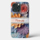 The design presents an eclectic array of 3D flowers in a delightful palette of colours, including shades of purple, salmon, blue, and pink. This composition brings together the grace of flowers in a symphony of colour that captures the essence of nature's beauty. The glass texture adds depth and authenticity, enhancing the visual appeal and providing a tactile experience. A stunning diamond frame stands ready for personalisation, inviting you to add your name and make this case truly your own.