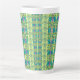 Vertical columns of an assortment of flowers,stems,leaves, and petals are arranged next to and within vertical columns of cupflower shapes.