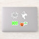 Decorate your space for Halloween with this assorted pack of stickers or magnets. Comes with spider web, spooky "BOO" text, ghost, and carved pumpkin saying "Happy Halloween".