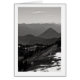 A black and white landscape photograph of rolling hills and mountains as far as the eye could see. Rows of trees here and there. And a few patches of snow still lingers in the early Summer time. Image Copyright ©2023 Kimberly J Tilley. www.zazzle.com/store/developingnature