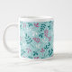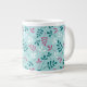 Assorted Leaves Pattern Teals Pink White Large Coffee Mug