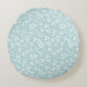 Assorted Leaves Rpt Ptn White on Duck Egg Blue Round Cushion