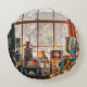 ASSORTED PLUSH TOYS ON BROWN WOODEN SHELF ROUND CUSHION